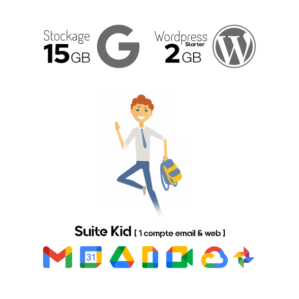 - Un compte Google Workspace incluant un email personalisé @pelletier.fr sur la plateforme Gmail. Stockages (15Gb, 30Gb, 150Gb ou 500Gb)